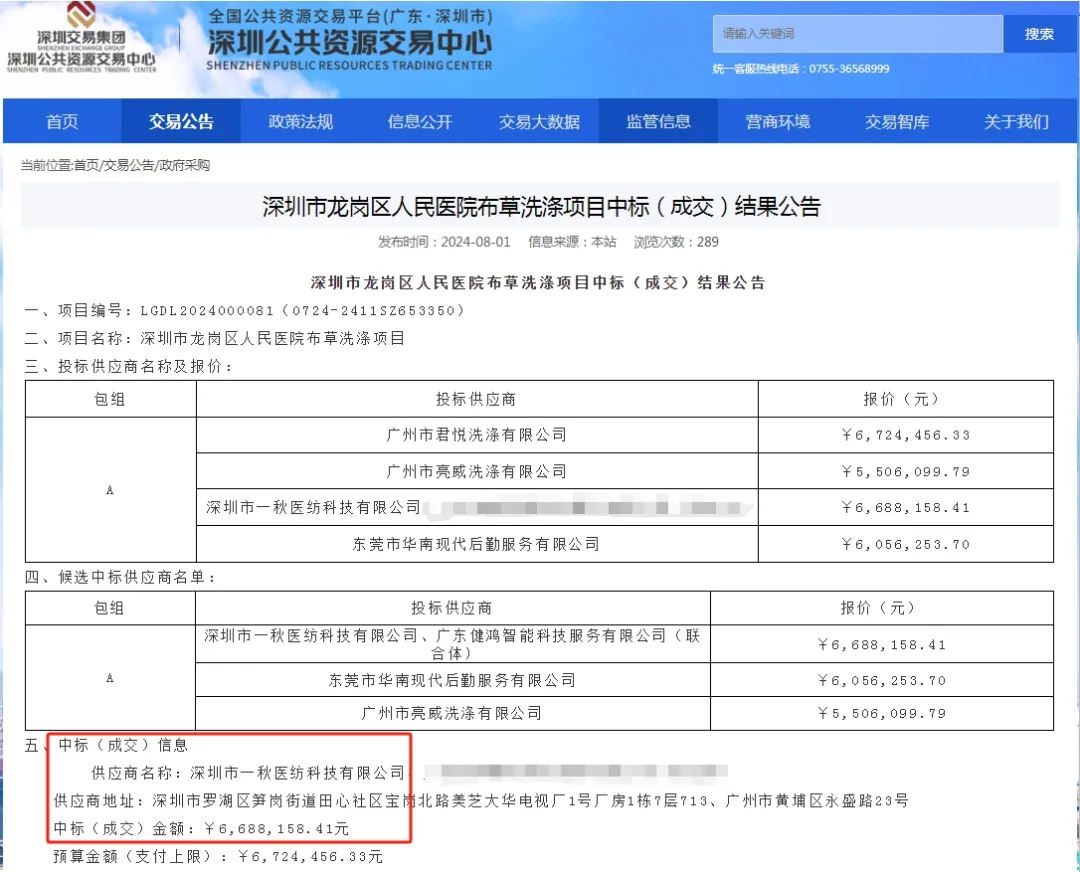 项目名称:深圳市龙岗区人民医院布草洗涤项目
