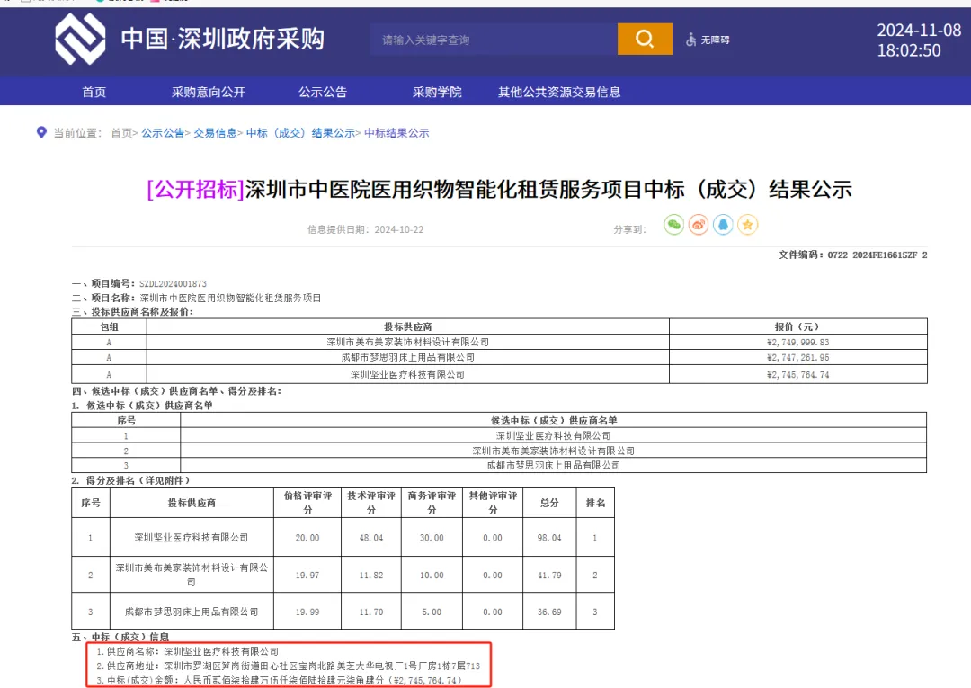 项目名称:深圳市中医院医用织物智能化租赁服务项目